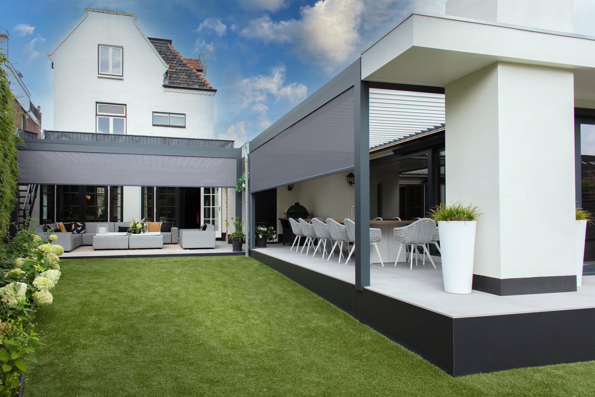 Die elegante Terrassenüberdachung mit dem Lamellendach B600 S ist der ideale Sonnenschutz.